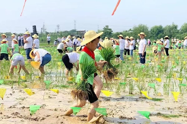 圖為學生在常州市鐘樓區(qū)佳農(nóng)探趣生態(tài)園開展插秧勞動實踐