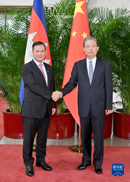 會(huì)見(jiàn)洪瑪奈時(shí),趙樂(lè)際表示,中柬是好鄰居好朋友,兩國(guó)友誼歷久彌堅(jiān)。趙樂(lè)際介紹了中國(guó)發(fā)展全過(guò)程人民民主、堅(jiān)定不移走符合自身國(guó)情政治發(fā)展道路的情況,強(qiáng)調(diào)中方尊重并支持柬埔寨人民選擇的民主道路。中國(guó)全國(guó)人大愿同柬埔寨國(guó)會(huì)、參議院一道,深入落實(shí)好兩國(guó)領(lǐng)導(dǎo)人達(dá)成的重要共識(shí),加強(qiáng)立法機(jī)構(gòu)各層級(jí)交流,為共建“一帶一路”合作走深走實(shí)提供法律支持,不斷厚植兩國(guó)世代友好的民意基礎(chǔ),推動(dòng)中柬全面戰(zhàn)略合作伙伴關(guān)系取得更大發(fā)展。