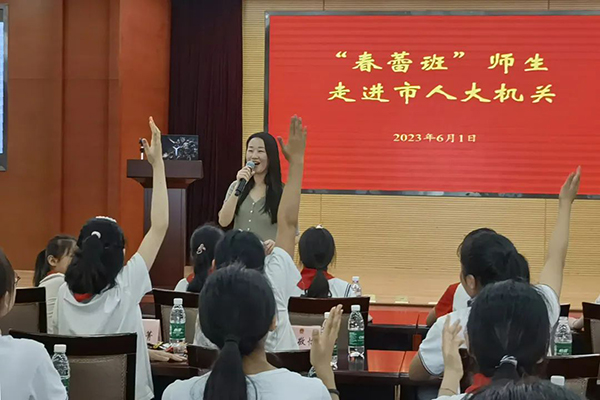 開發(fā)區(qū)樸席中心學(xué)校大隊(duì)輔導(dǎo)員郭加娟表示,學(xué)校90%學(xué)生為留守兒童,平時缺乏這樣的社會實(shí)踐機(jī)會?!斑@次機(jī)關(guān)開放日活動,帶孩子們走進(jìn)人大、了解人大、感受人大,拉近了人大與學(xué)校之間的聯(lián)系,彌補(bǔ)了學(xué)校在法制教育方面的短板,讓學(xué)生真真切切感受到了法制的權(quán)威,同時也會學(xué)校的大思政課注入了新的活力?!惫蠋煴硎?,這次機(jī)會對于孩子們來說難能可貴。