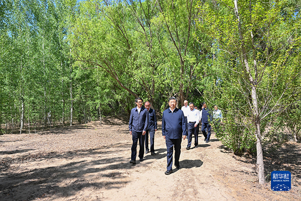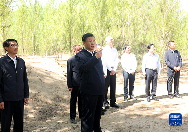 6月5日至6日,中共中央總書(shū)記、國(guó)家主席、中央軍委主席習(xí)近平在內(nèi)蒙古巴彥淖爾考察,并主持召開(kāi)加強(qiáng)荒漠化綜合防治和推進(jìn)“三北”等重點(diǎn)生態(tài)工程建設(shè)座談會(huì)。這是5日下午,習(xí)近平在烏梁素??疾?。新華社記者 謝環(huán)馳 攝