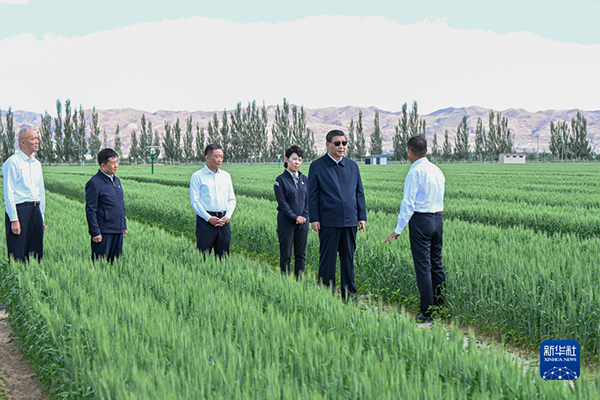 6月5日至6日,中共中央總書(shū)記、國(guó)家主席、中央軍委主席習(xí)近平在內(nèi)蒙古巴彥淖爾考察,并主持召開(kāi)加強(qiáng)荒漠化綜合防治和推進(jìn)“三北”等重點(diǎn)生態(tài)工程建設(shè)座談會(huì)。這是5日下午,習(xí)近平在位于烏梁素海南岸的現(xiàn)代農(nóng)業(yè)示范園區(qū)考察。新華社記者 謝環(huán)馳 攝