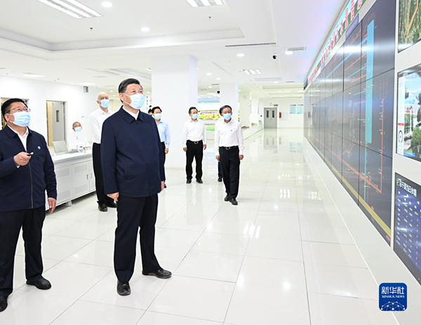 6月5日至6日,中共中央總書(shū)記、國(guó)家主席、中央軍委主席習(xí)近平在內(nèi)蒙古巴彥淖爾考察,并主持召開(kāi)加強(qiáng)荒漠化綜合防治和推進(jìn)“三北”等重點(diǎn)生態(tài)工程建設(shè)座談會(huì)。這是6日上午,習(xí)近平在河套灌區(qū)水量信息化監(jiān)測(cè)中心考察。新華社記者 申宏 攝